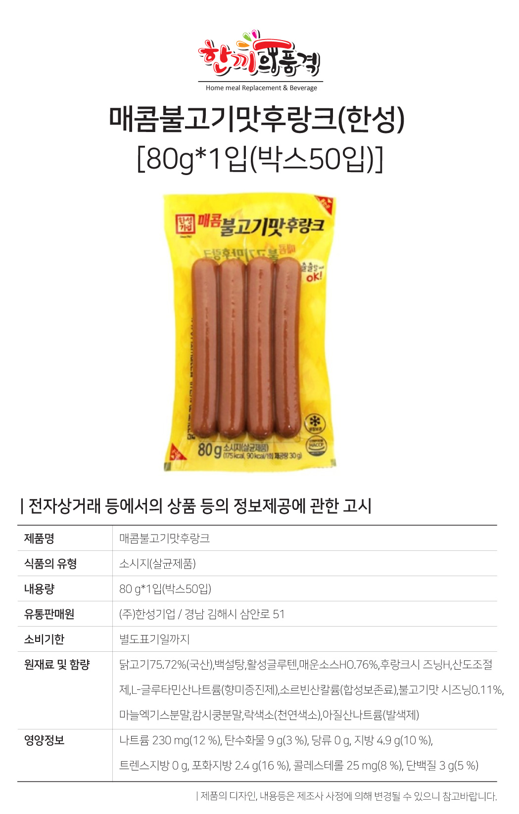 매콤불고기맛후랑크(한성) > (16) 냉장식품류